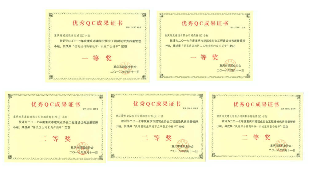 2018年4月12日,重慶市建筑業(yè)協(xié)會(huì)“2017年度建設(shè)優(yōu)秀質(zhì)量管理小組表彰暨成果發(fā)布會(huì)”隆重召開。重慶渝發(fā)建設(shè)有限公司榮獲“2017年度建設(shè)優(yōu)秀質(zhì)量管理小組”一等獎(jiǎng)兩名,二等獎(jiǎng)三名。...