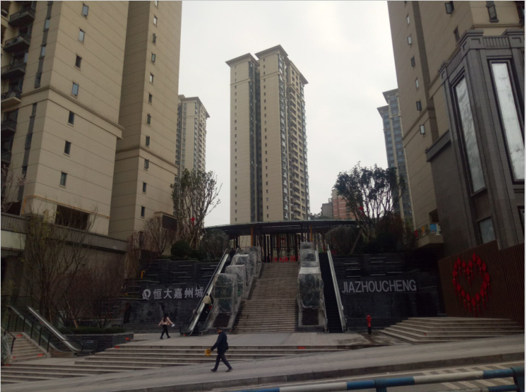 恒大嘉州城項目位于渝北區(qū)新溉路與金頂路相交處(中渝17號地塊),項目占地面積為53579㎡(約80.45畝),總建筑面積約為23.3萬㎡(其中居住面積約16.16萬㎡、公建面積約為1.05萬㎡、車庫及設(shè)備用房面積約為5.84萬㎡)。