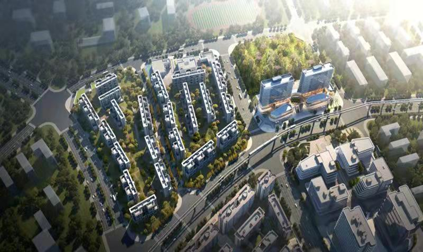其中北地塊主要建筑物為2棟商業(yè)樓(1棟13F/-2F,1棟14F/-2F),總建筑高度51m。中地塊主要建筑物為11棟住宅樓(8F/-2F),1棟商業(yè)樓(2F),1棟幼兒園(3F),1棟社區(qū)服務(wù)中心(3F),住宅建筑高度26.3m。南地塊主要建筑物為11棟住宅樓(8F/-2F),2棟商業(yè)樓(1F),總建筑高度26.3m。